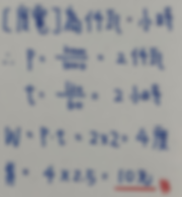 10 以一個平均功率為 2000 瓦特的電鍋煮飯 120 分鐘,若每度電價為 2.5 元,則電費為多少元?