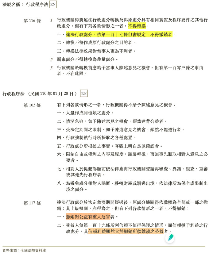 行政程序法第116條(違法行政處分之轉換)