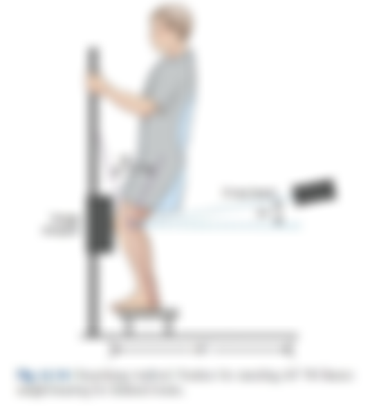(D)病人站立採PA姿勢,膝關節彎曲45度,膝蓋頂住造影板,X光向尾10度射向臏骨下約1.25公分