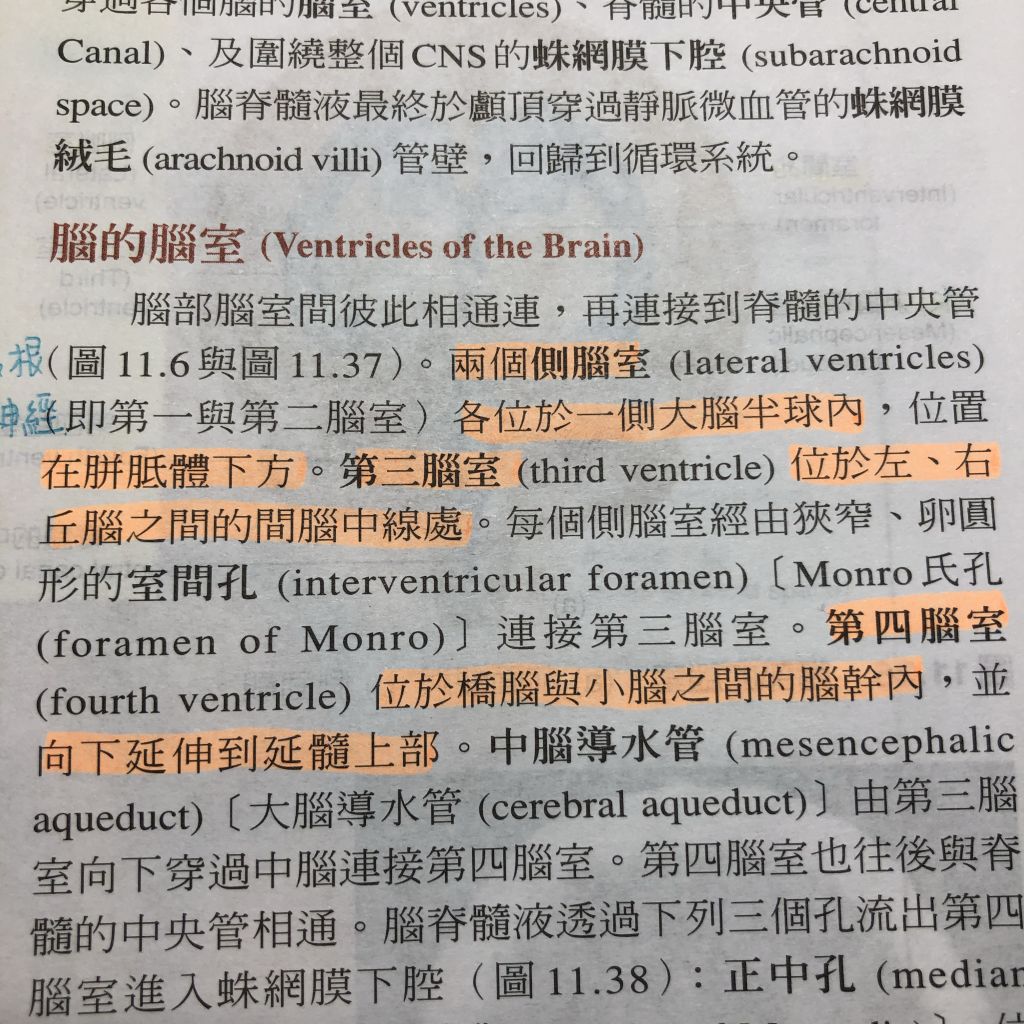 (D)腦脊髓液(cerebrospinal fluid)是由腦室系統內的脈絡叢(choroid plexus)所生成