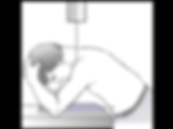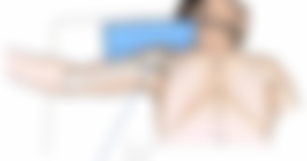 (C)病人平躺,手臂伸直部儘量向外旋轉,X光管打25至30度射向腋窩
