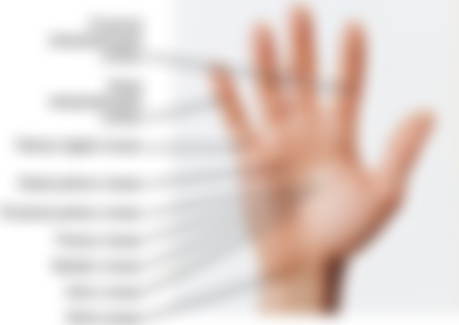(A)近端橫向掌紋(proximal palmar crease)對應到掌指關節(MP)的位置