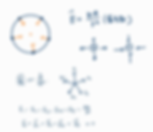 10. 在半徑為 r 的圓周上,有 5 個對稱排列的正電荷,已知每一個電荷的電量為 q,則圓心處的電場強度 E是多少? (k = 9 × 10