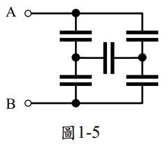 10. 如圖1-5 所示電路,假設電容值皆為10μF ,A、B兩點間之總電容量 CAB=