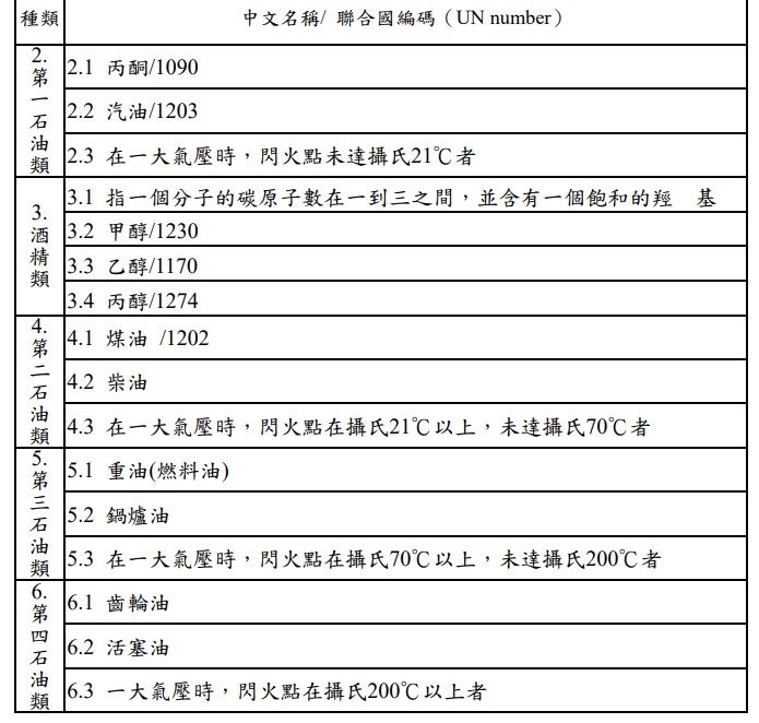 公危物可燃氣設置標準拿掉石油類的舉例了