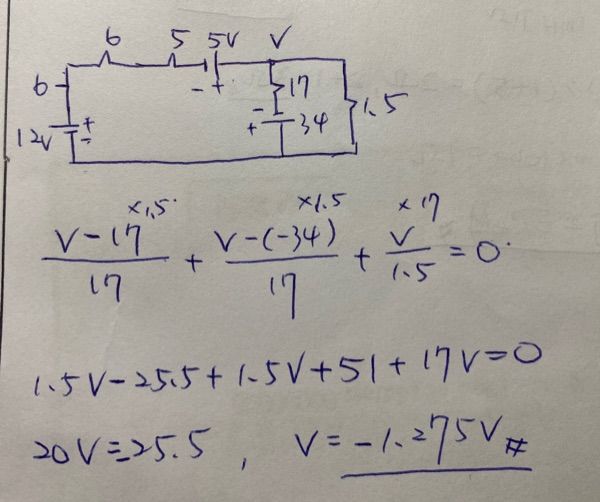 11 如圖所示之電路,求電壓 v 之值約為何?