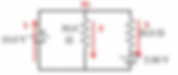 11 忽略下列電路圖中電池的內阻,請計算流過 10.0 V 電池的電流?