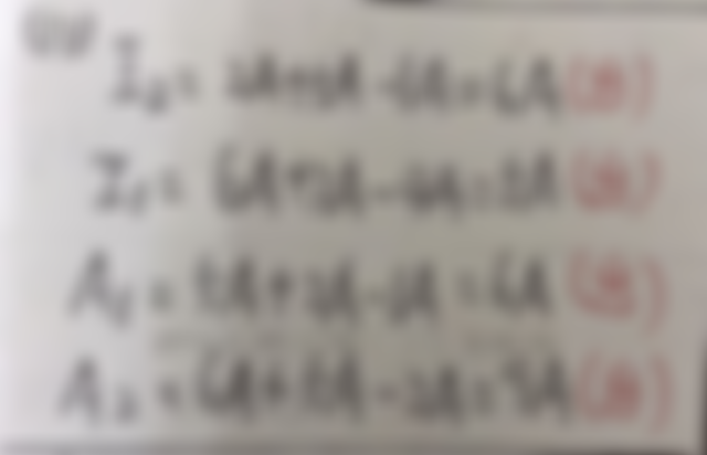11 一串並聯電路,流進/流出各個節點的分支電流如圖所示,其中 A1 及 A2 為電流錶,求 A2 之指示值為