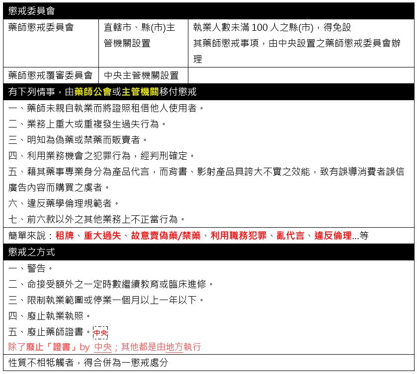 - 廢止執業執照或藥師證書→2/3出席,2/3同意