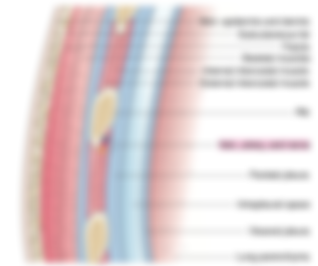 11.在肋骨下溝(subcostal groove)的神經血管其排列方式,由上往下依序為: