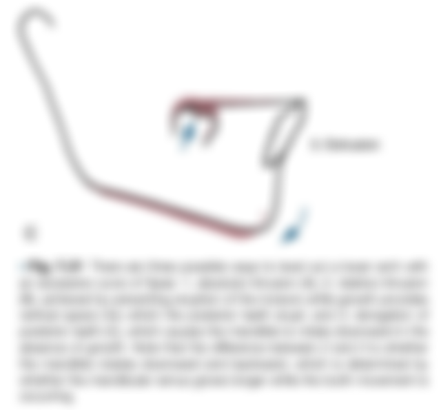 11.如圖所示,在仍有生長的情況下,用來解決下顎史比曲線(curve of Spee)過深的最可能方式為下列何者?