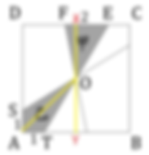 11.正方形ABCD中,O為正方形的中心點; (EF) ̅=2公分、(AT) ̅=(AS) ̅=1公分;甲為 ∆OEF 的面積、乙為四邊形OSAT的面積;如下圖: