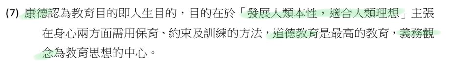 (3)道德教育:「自律的殿堂必經他律的大門」,最終目標是「意志自律」