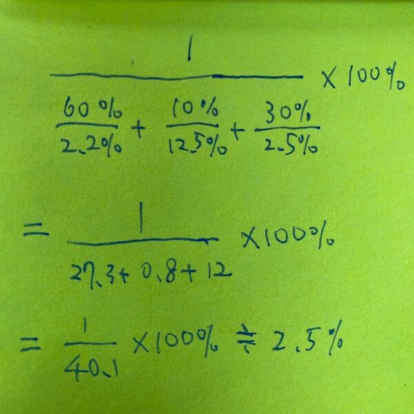1/(60/2.2)+(10/12.5)+(30/2.5)=0.025