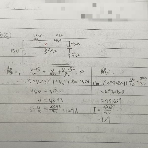 12 如圖示之電路,求電流 I 之值約為何?