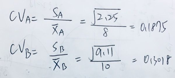 12 某跨國企業管理階層想要比較兩個工廠 A 和 B 製造的不良品數目的變異程度(variance),下列為從 A 和 B 兩個工廠隨機抽樣的結果:
