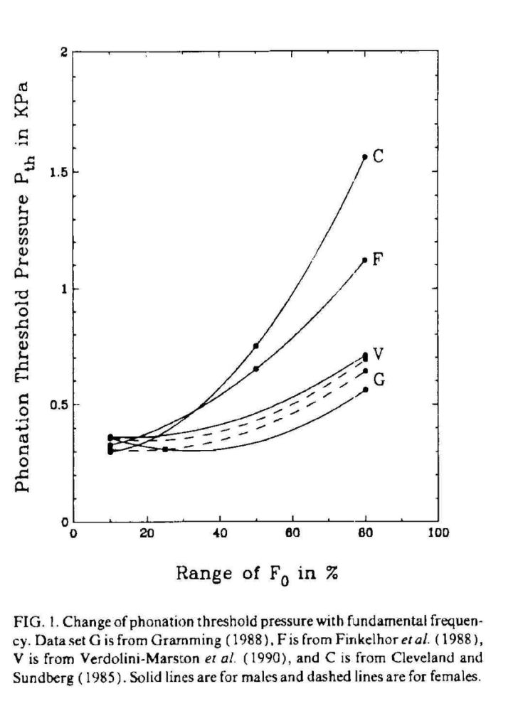 對大部分人來說,發聲基頻(fundamental frequency)降低時,PTP 會提高→下降