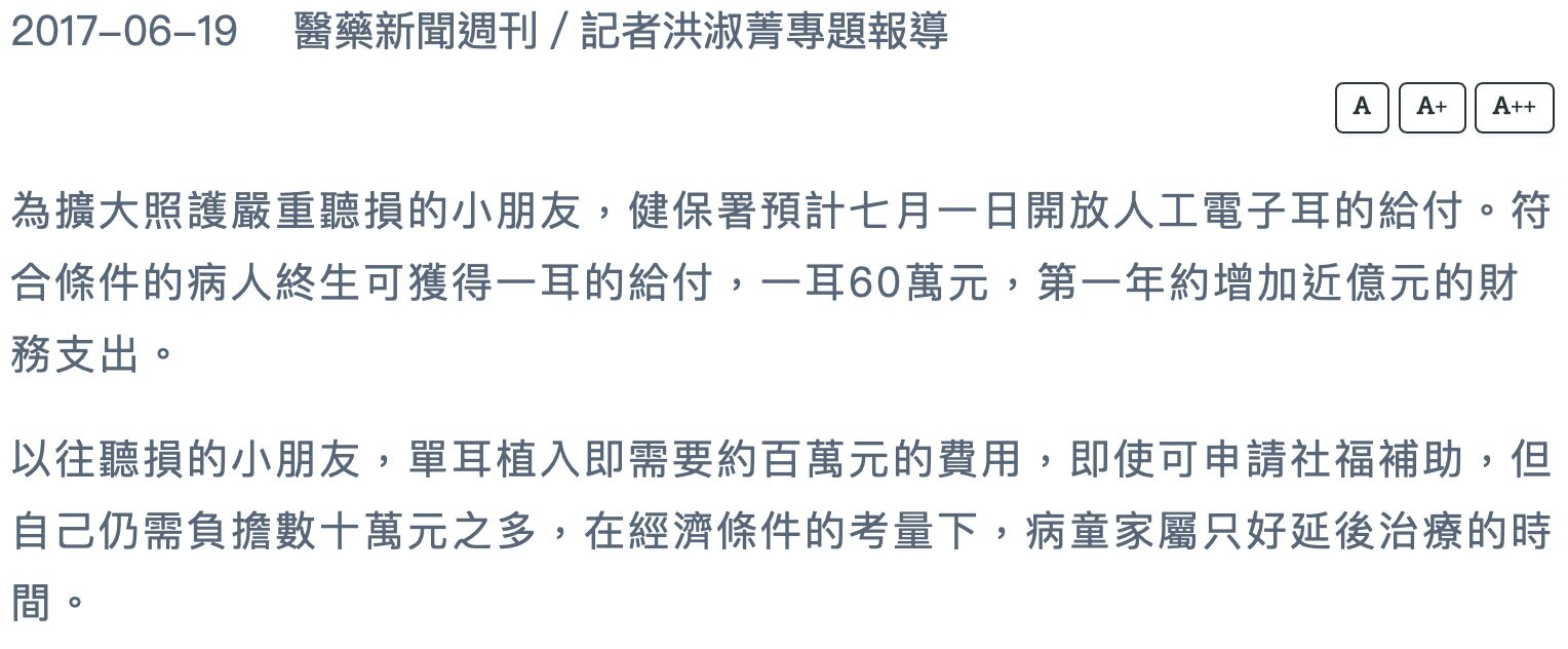 12.受惠於健保給付,嚴重聽損孩童於哪一年的七月開始可以申請 人工電子補助?