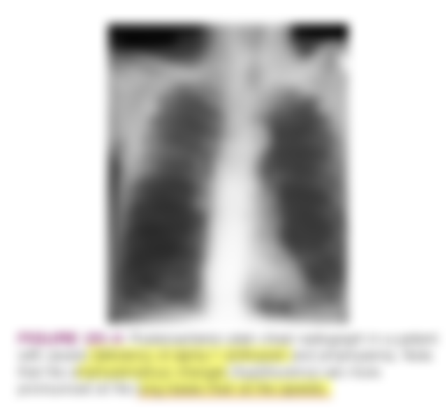 12.有關α1-抗胰蛋白酶缺乏症(alpha-1 antitrypsin deficiency)引起的慢性阻塞性肺病(COPD)的特徵,下列