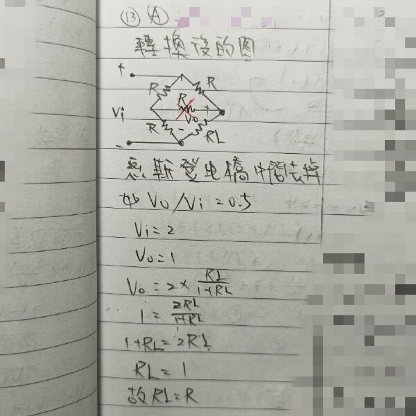 13 如圖所示之電路,如 vo/vi=0.5,求 RL與 R 之關係為何?