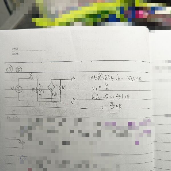 那個菱形是相依電流源,把它乘以R轉成電壓源就是答案了