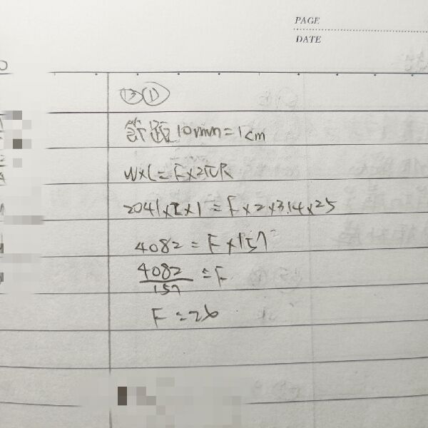 13 欲使用螺旋起重機舉起 2,041 kg 重之物體,設起重機手柄半徑為 25 cm,螺旋為雙線螺紋,節距為 10 mm,