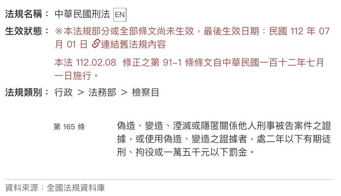 偽造、變造、湮滅或隱匿關係他人刑事被告案件之證據,或使用偽造、變造之證據者,處二年以下有期徒刑、拘役或一萬五千元以下罰金