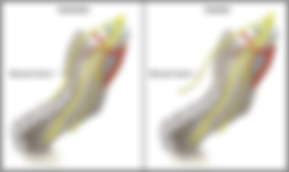 舌神經 的位置靠近下顎第三大臼齒的舌側,...