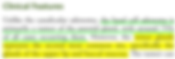 (B)如果發生於小唾液腺,以上唇及頰黏膜為主要的好發部位