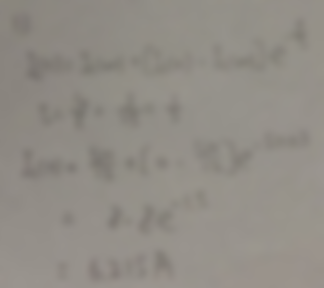 13. 有一電感為3 H,電阻為15 Ω的線圈,在t = 0 時連接到120 V直流電源,其在0.3 s後之電流值
