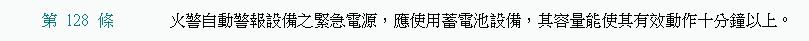 14 火警自動報警設備之緊急電源,應使用 蓄電池設備,依規定其容量能使其有效 動作至少多久?