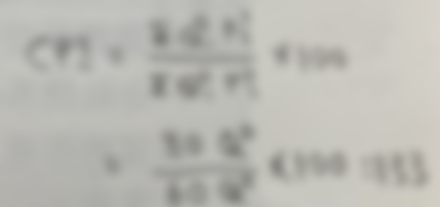 當期物價/基期物價×100=CPI