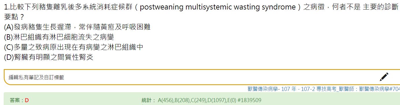 若題目改為不是豬"離乳後多系統消耗症候群"的病變