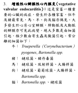 (B)在豬最常引起的細菌為Streptococcus spp.及Erysipelothrix rhusiopathiae