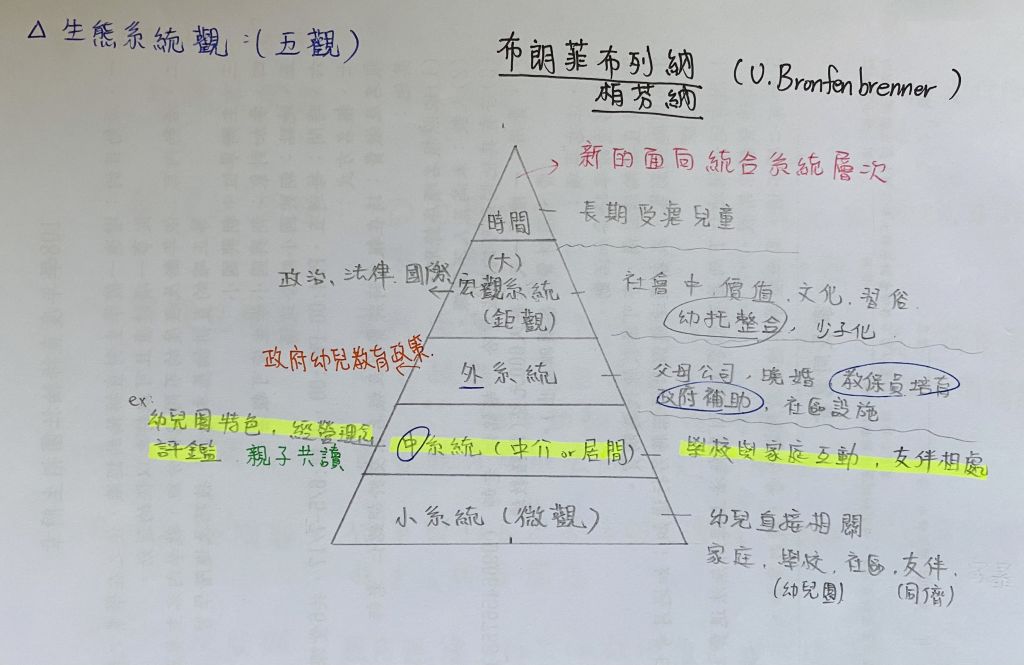 丙、幼兒就讀的幼兒園屬於中間系統 (微觀系統)
