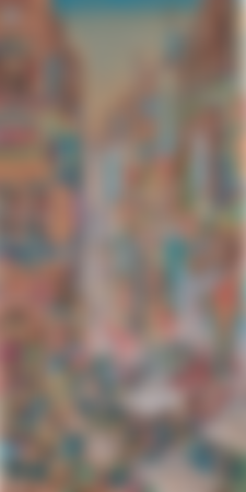 《南街殷賑》是郭雪湖以誇張、戲劇化手法描...