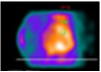 (D)在心臟以外區域若有 Thallium-201 同位素蓄積,如附圖箭頭所示,有可能是乳房腫瘤