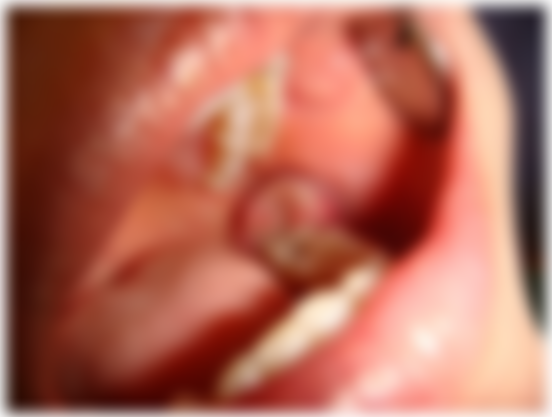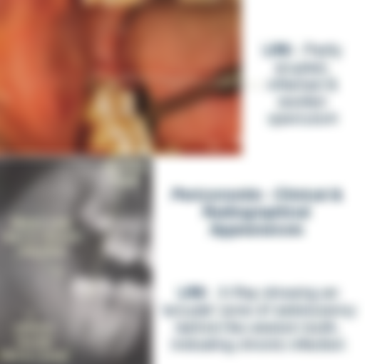 14.病人主訴右下顎骨智齒區域腫痛已有三天,如圖所示,下列診斷何者最適當? (A)牙冠周圍炎(pericoronitis) (B)鱗狀細胞癌(squamous cell carcinoma) (C)化膿性肉芽腫(pyogenic granuloma) (D)含牙性囊腫(odontogenic cyst)