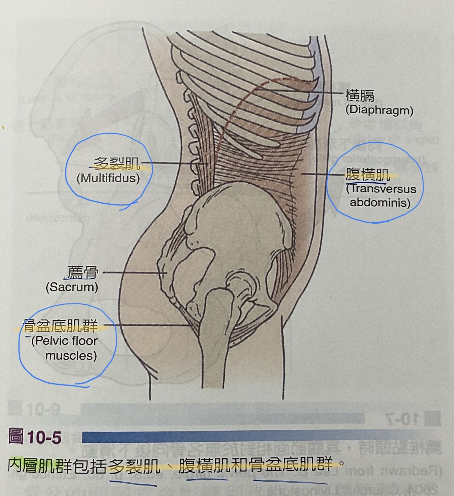 1.內層:由腹橫肌、橫膈、多裂肌和骨盆底肌。