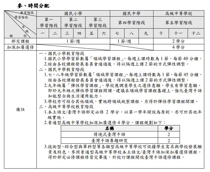 https://www.k12ea.gov.tw/files/class_schema/%E8%AA%B2%E7%B6%B1/4-%E9%96%A9/%E5%8D%81%E4%BA%8C%E5%B9%B4%E5%9C%8B%E6%B0%91%E5%9F%BA%E6%9C%AC%E6%95%99%E8%82%B2%E8%AA%B2%E7%A8%8B%E7%B6%B1%E8%A6%81%E8%AA%9E%E6%96%87%E9%A0%98%E5%9F%9F-%E8%87%BA%E7%81%A3%E6%89%8B%E8%AA%9E(111%E5%AD%B8%E5%B9%B4%E5%BA%A6%E5%AF%A6%E6%96%BD).pdf