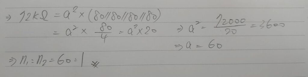 14. 有4支相同的喇叭並聯後,接於耦合變壓器二次側,每支喇叭電阻值為80Ω,一次側看入 之有效負載總電阻值為72kΩ,求所使用耦合變壓器之一次側與二次側匝數比為下列何者?