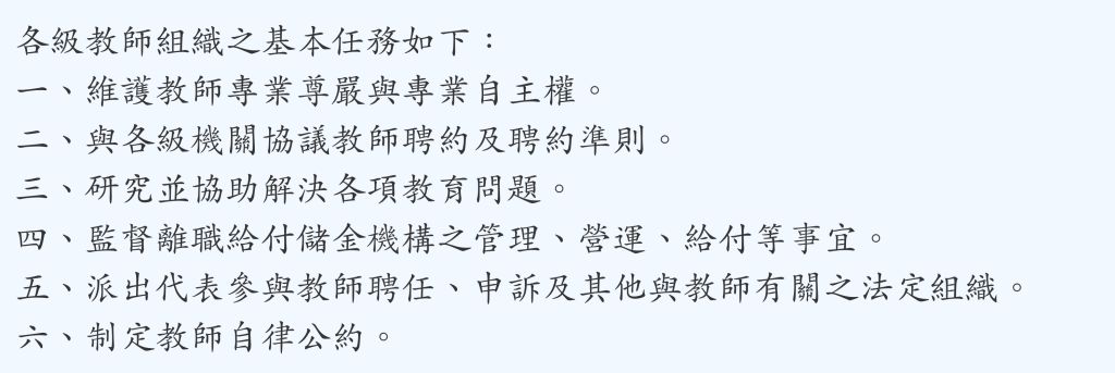 14. 根據教師法,各級教師組織之基本任務,不包含以下哪一項?