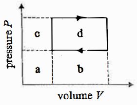 14. Consider a cyclic process of a thermodynamic system. The Pressure-Volume diagram of this process is shown in the figure. What area in the P-V diagram represents the work done by the system in each cycle?