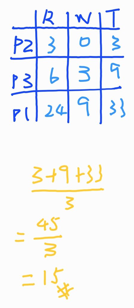 15 有三個處理程序(Process) P1、P2、P3,其需要 CPU 執行的時間分別為 24、3、6 個單位時間,今 CPU