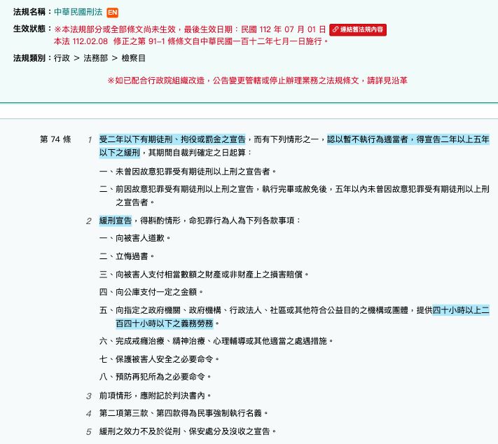 合公益目的之機構或團體提供四十小時以上二百四十小時以下之義務