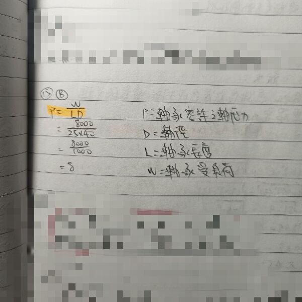 15 一軸承之長度為 25 mm,軸徑為 40 mm,能承受 8 kN 之負荷,則軸承之容許壓力為何?