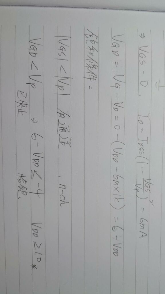 =6mA,若JFET工作於飽和區, 則直流電壓源