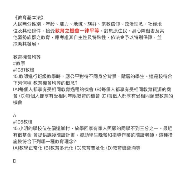 (D)教育機會均等
