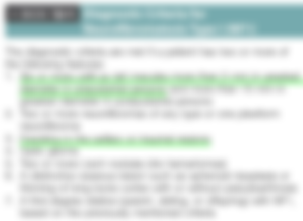 (C)皮膚可出現暗褐⾊牛奶咖啡(café-au-lait)斑塊,或腋下出現斑點(axillary freckling)