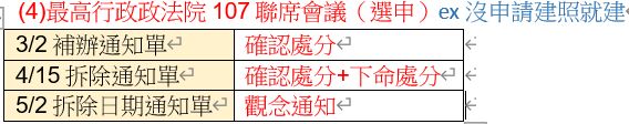 本件違章建築補辦手續通知單(下稱補辦通知單)僅係確認B所有之甲房屋為程序違建及通知其補辦建造執照,並未命B拆除其所有之甲房屋,尚難以此作為執行拆除之名義。而違章建築拆除通知單(下稱拆除通知單)雖係接續補辦通知單的行政行為,但其內容既係認定B逾期未補辦申請建造執照手續,構成拆除要件,並表示「依違章建築處理辦法第5條規定應執行拆除」係屬違章建築之甲房屋,即含有命B自行拆除,否則逕為強制執行之意思,自應認該拆除通知單屬於確認及下命性質之行政處分